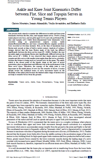 Ankle and Knee Joint Kinematics Differ between Flat, Slice and Topspin Serves in Young Tennis Players